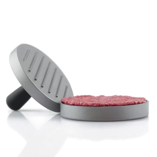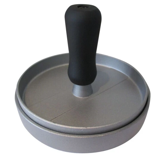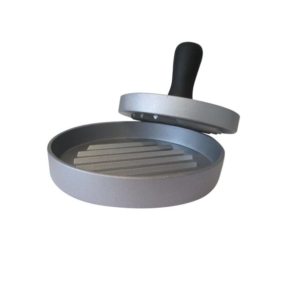 HamburgerpresseMit dem idealen Grillzubehör macht der Grillabend noch mehr Freude. Treten sie als Grillprofi vor ihren Gästen auf. Tepro bietet hilfreiche und funktionale Utensilien auf die Sie beim Grillen nicht verzichten sollten. BESCHREIBUNG aus Aluguss antihaftbeschichtet mit Kunststoffgriff Stempel mit Rillen für schnelle Garzeiten Größe: ca. 12 cm Ø TECHNISCHE DATEN Maße aufgebaut: ca. 12 cm x 12 cm x 9,5 cm (BxTxH) Farbe: silber Gewicht: 0.2 kg netto Modelländerungen vorbehalten
