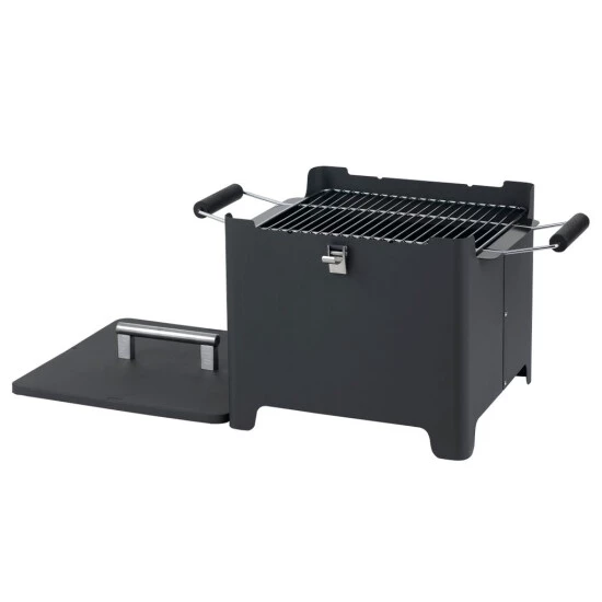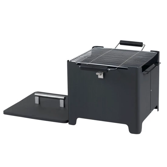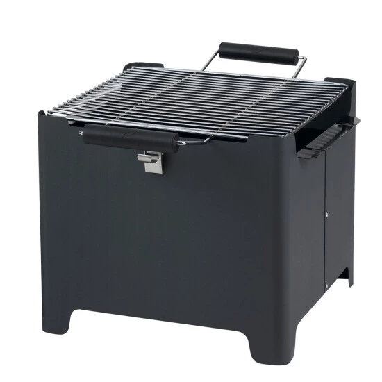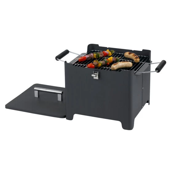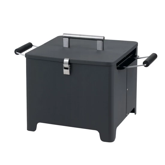 Ein Highlight für den mobilen Einsatz in der Natur oder einem Festival, ist der Holzkohlegrill Cube Chill&Grill. Auf dem kompakten und verchromten Grillrost mit den Maßen 31,5 cm x 31,5 cm, lassen sich beim Grill-Picknick dennoch nicht wenige Grillwürstchen auflegen. Der Deckel wie auch der Korpus des Holzkohlegrill Cube Chill&Grill, ist in der Farbe anthrazit lackiert, die innenliegende Schale zur Aufnahme der Holzkohle wurde emailliert. Die Holzkohleschale selbst, sollte aufgrund Kompaktbauweise nur mit maximal 1 kg Holzkohle beladen werden. Der Deckel des Holzkohlegrill Cube Chill&Grill, wird während des Transportes einfach mit zwei Schnappschlössern gegen unbeabsichtigtes herunterfallen gesichert. Infolge der Kompaktbauweise, belaufen sich die Abmessungen des Holzkohlegrill Cube Chill&Grill auf 53,5 cm(gemessen von Grillrosthandgriff zu Grillrosthandgriff) in der Breite, 36,3 cm in der Tiefe und 30,5 cm in der Höhe(Außenmaß).