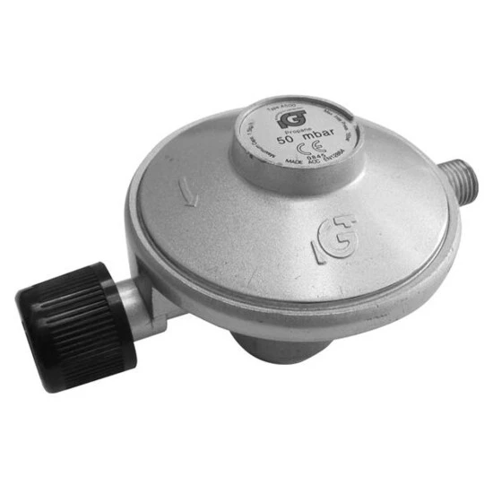 Gaskartuschen Druckregler geeignet für Schraubventilkartuschen mit Universalgewinde ideal für mobile Gasgrills, zum Beispiel Tepro Tisch-Gasgrill Abington Eingangsgewinde 7/16 Ausgangsgewinde H1/4 Iks Ausgangsdruck 50 mbar Maße: L 11,5 x B 8 x H 6,5 cm Farbe: silber Gewicht: ca. 270 g