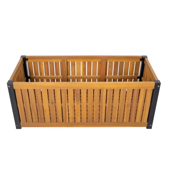 Das helle geölte Akazienholz in seinem natürlichen Look harmoniert perfekt mit den dunklen Stahlbeinen. Eine moderne Optik, die nicht zu aufdringlich in ihrem Umfeld hervorsticht und dabei stabil und elegant ist.