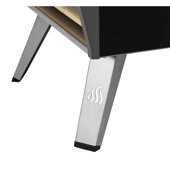 Das Design ist durch die kompakte, gedrungene und runde Bauform und die Kombination aus matt-schwarz und anthrazit sehr elegant und stilvoll. Deine Gäste werden alles an diesem Pizzaofen lieben.