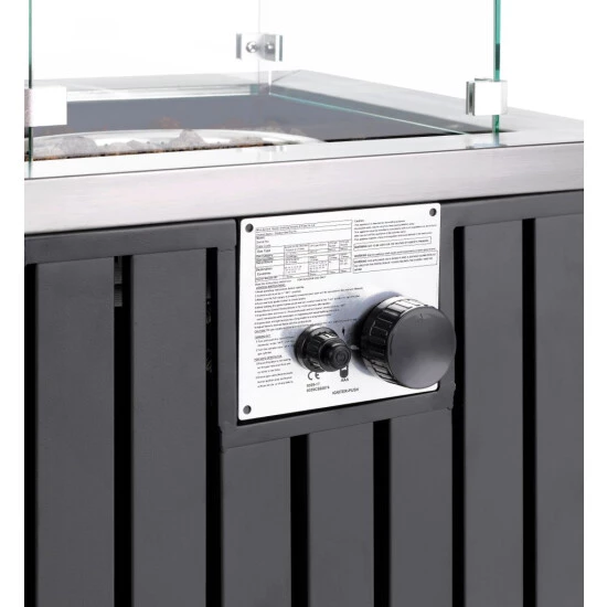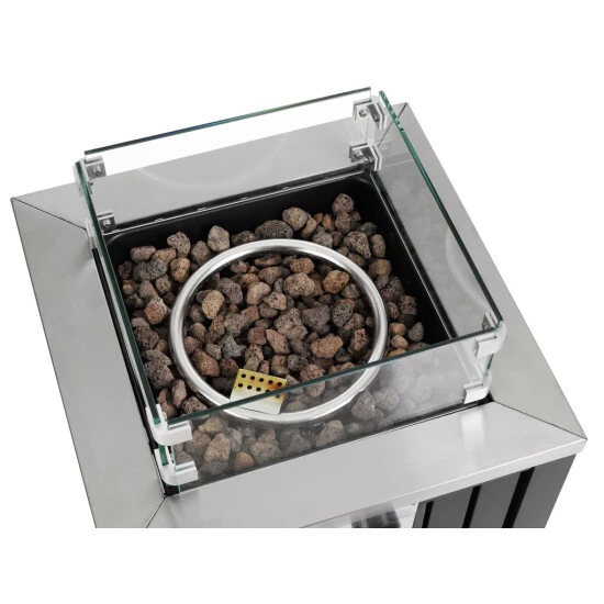 ‚- Edelstahl-Brenner, ca. 13 kW – Glasumrandung – inklusive Lavasteine – pulverbeschichtetes Gehäuse – elektrische Piezo-Zündung (Batterie nicht im Lieferumfang) – inklusive Abdeckhaube – Gasflaschenhalter im Gehäuse – inklusive Schlauch und Regler Produktmaße:50 x 50 x 62 (LxBxH) Nettogewicht: 20,9kg Verpackungsmaße:56,5 x 66 x 28 (LxBxH) Bruttogewicht: 24,6kg