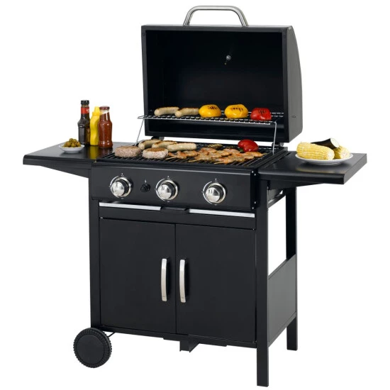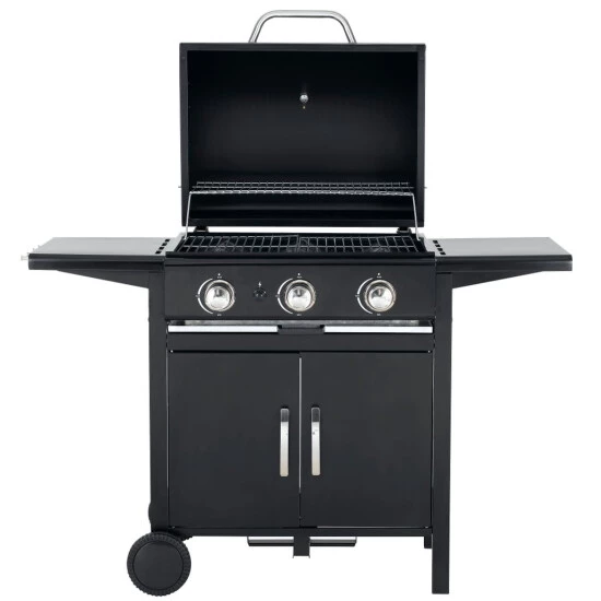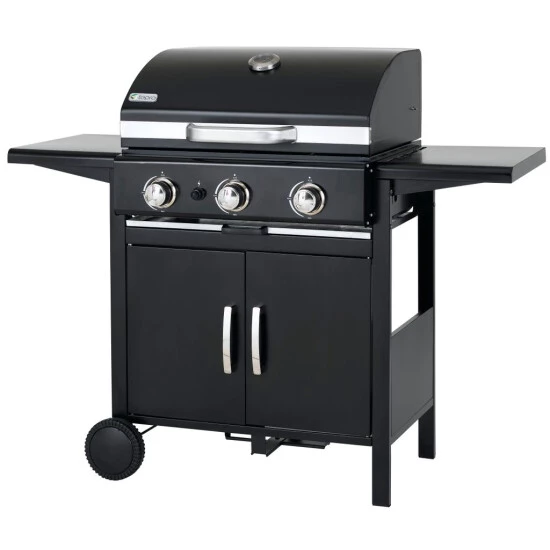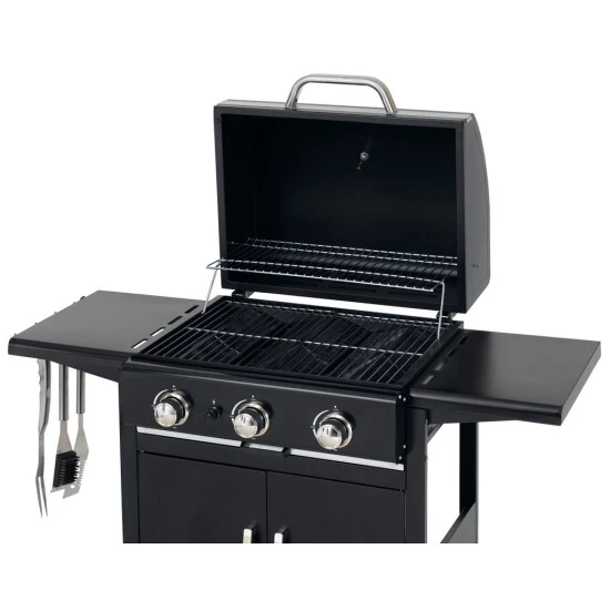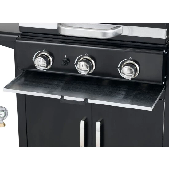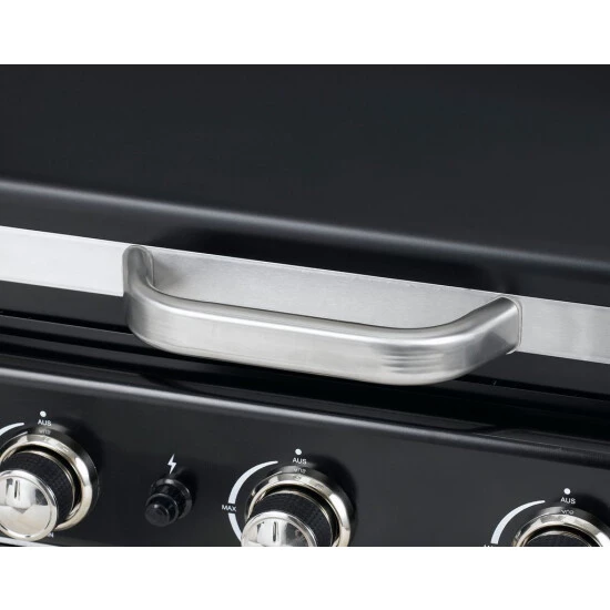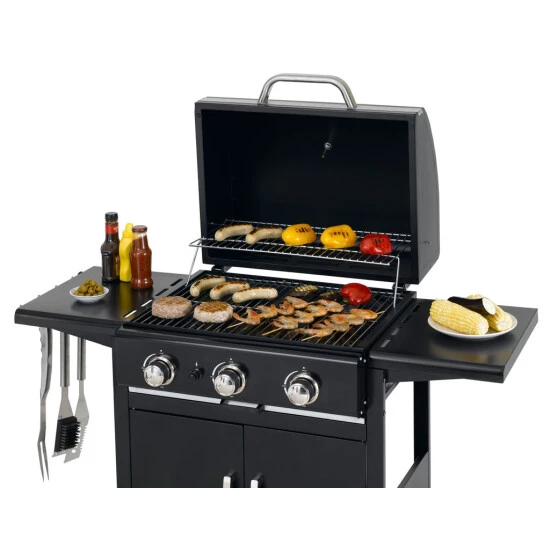Die große Grillfläche bietet Raum für viele Grillwünsche. Die Garzeiten für verschiedenes Grillgut abzuschätzen ist oftmals nicht einfach. Die integrierte Warmhaltefläche hält die gegrillten Speisen warm, sodass alle Gäste zur gleichen Zeit essen können. Praktische Besteckhaken und zwei Seitenablagen bieten zusätzliche Ablagefläche für Grillutensilien, Soßen oder Gewürze und somit erhöhten Komfort beim Grillen. Durch die drei unabhängig voneinander regulierbaren Edelstahlbrenner mit integrierter Piezo-Zündung im Drehregler ist der Grill im Handumdrehen einsatzbereit. Die Regler lassen Sie die Temperatur einfach und schnell regulieren. Für ein optimales Grillergebnis.