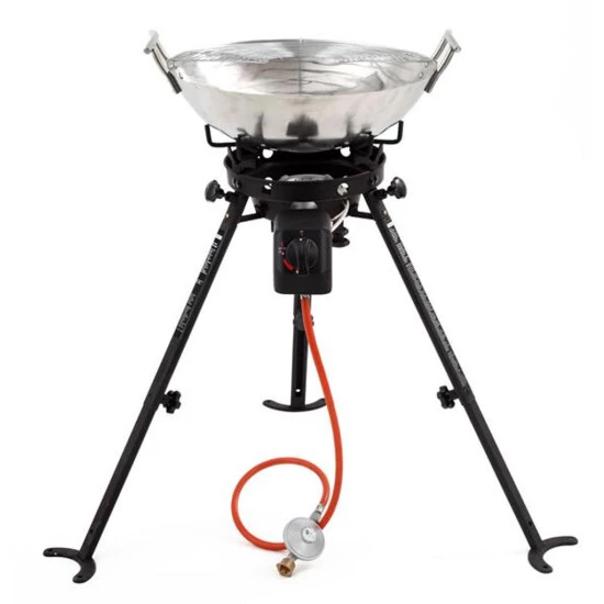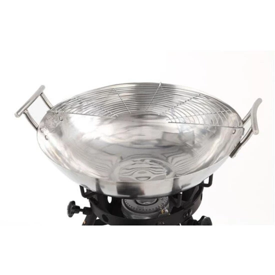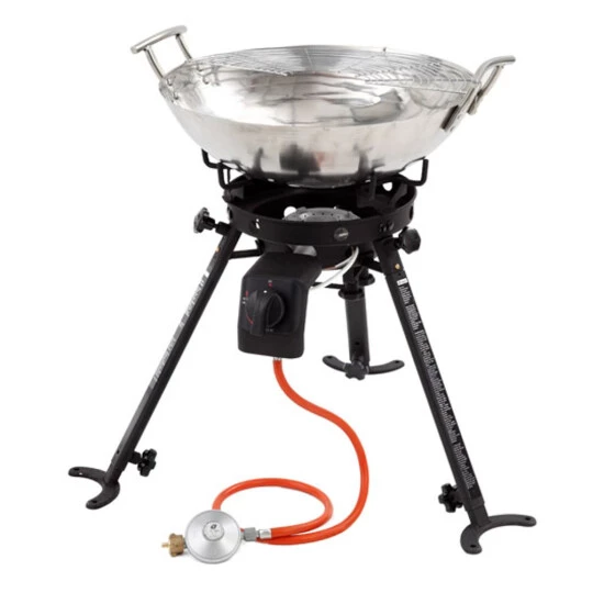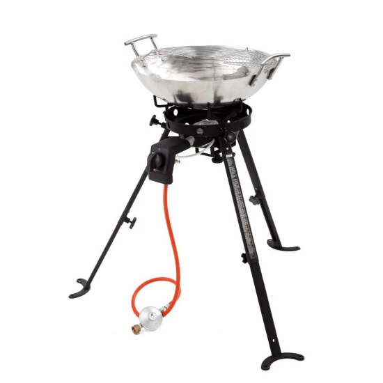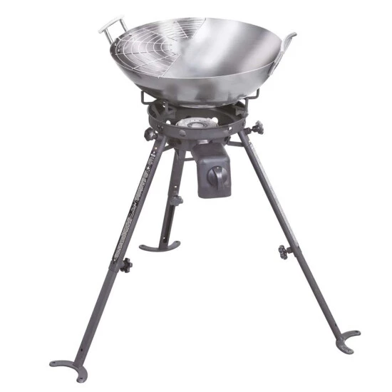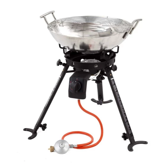 Der Tepro Gas-Wok Shanghai ist ideal zum Braten, Kochen, Dämpfen, Schmoren und Simmern im Freien. Das Gerät, das vor allem für die Zubereitung asiatischer Rezepte gedacht ist, verfügt über verstellbare und abnehmbare Beine. Zur praktischen Ausstattung gehören ein Warmhalterost, ein Edelstahl-Löffel und ein Pfannenheber. Mit dem integrierten Thermometer lässt sich die Zubereitung der Wok-Gerichte zusätzlich optimieren.