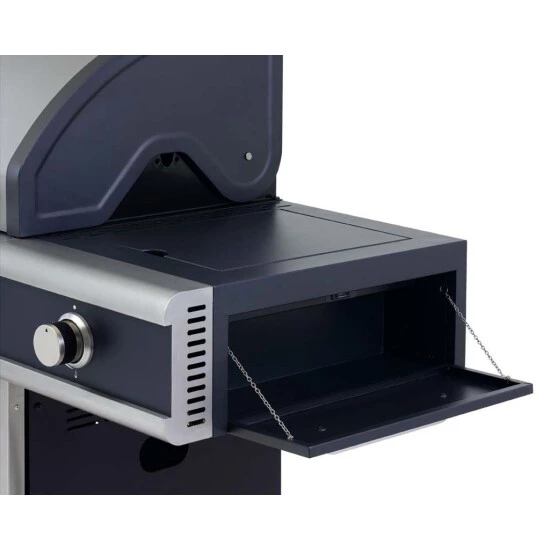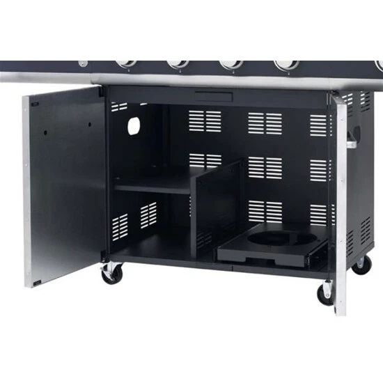 Durch sein elegantes Design im amerikanischen Vintage-Stil ist der ÂVancouver ein Blickfang auf jedem Grillevent. Das Schmuckstück ist ein wahres Stauraumwunder für alle Grillutensilien, die der Grillmeister benötigt. So lässt sich alles entweder im doppeltürigen Trolley mit Ablageboden oder auch im integrierten Seitenablagen-Fach unterbringen. Der Trolley bietet einen weiteren Clou, nämlich die herausziehbare Gasflaschenhalterung. So lässt sich die Falsche mühelos im Trolley einsetzten und wieder herausnehmen. Egal ob ein direktes oder indirektes Grillverfahren geplant ist, die 4 Brenner sind im Handumdrehen mittels Drehregler eingestellt und die die Temperatur kann einfach durch das Deckelthermometer beobachtet werden. Die emaillierten Gruss-Grillroste hinterlassen dabei ein schönes Branding auf dem saftigen Steak und erstrecken sich über eine Grillfläche von ca. 7x48cm (LxB). Somit hat man genügend Platz für viele Gäste und unterschiedliche Temperaturzonen innerhalb der Grillfläche können dabei eingestellt werden. Sollte das fertige Grillgut noch keinen Abnehmer gefunden haben, lässt es sich auf der oberen Ebene ideal warmhalten. Die Mitte lässt sich durch das tepro Rost-in-Rost-System mittels verschiedener, separat erhältlicher Einleger ergänzen. Dabei gelingt jedes Gericht, das ein besonderes Grillaroma erhalten soll, egal ob Pizza, Pfannen-, oder Gemüse-Gericht. Somit bietet der ÂVancouver Grillspaß für die ganze Familie und jeder kann sein eigenes Lieblingsgericht darauf zubereiten. Der praktische Seitenkocher ist vielseitig einsetzbar, so kann man darauf in einem Topf Soßen oder auch Grillgemüse aus dem Gemüsewok zubereiten. Den unzähligen Grillmöglichkeiten sind dabei keine Grenzen gesetzt. Mit dem Gasgrill ÂVancouver ist auch das Säubern nun kein Problem mehr. Einfach warmes Seifenwasser oder eine der praktischen Grillreinigungsbürsten von tepro benutzen und schon ist der Grill bereit für das nächste Fest.