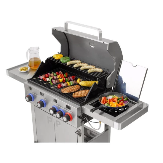 Dank Edelstahl-Brennern und Seitenkocher: Der Wellington 4 bietet vielfältige Grillmöglichkeiten