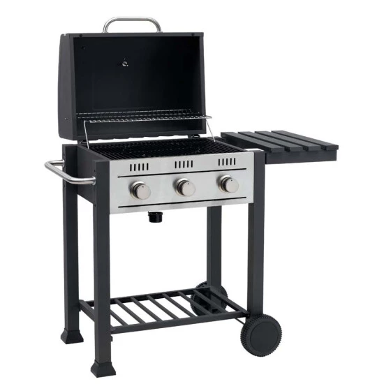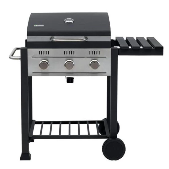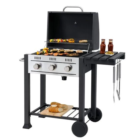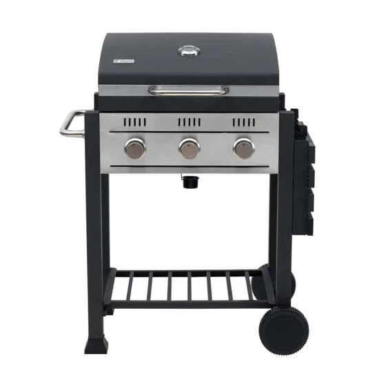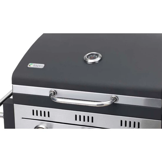 Jetzt kommt der Klassiker von tepro auch als Gasgrill daher. Der ‚Toronto Gas‘ bietet eine große Bandbreite von Grillmöglichkeiten und macht jeden Ihrer Grillabende zu einem Event. Der im amerikanischen Stil anmutende Wagengrill zeichnet sich durch seine 3 Edelstahl Brenner aus. Neben dem Design besticht der Toronto Gas durch die typischen Eigenschaften eines Gasgrills. Die gut regulierbare Hitze ist schnell vorhanden und der Grill ist in kurzer Zeit einsatzbereit. Das Grillen für viele Personen kann ohne längere Pausen ermöglicht werden. Bei jedem Grillgut kann ein optimales Ergebnis erreicht werden, denn der dreifache Brenner des Gasgrills ist getrennt regelbar. Beim Schließen des Deckels wird das Grillgut schonend indirekt zubereitet. Ähnlich wie beim Umluft Herd wird das Grillgut bei diesem Vorgang von allen Seiten gleichmäßig gegart.