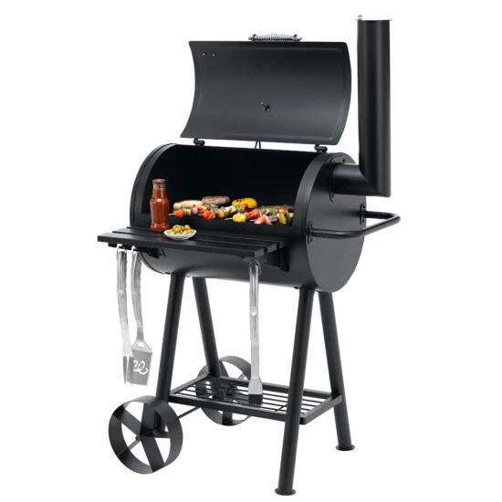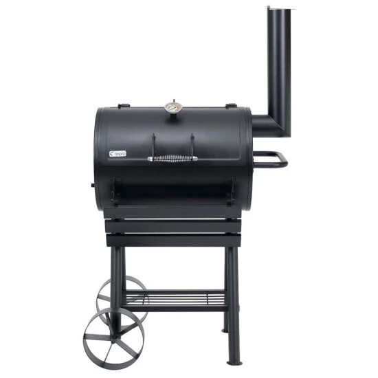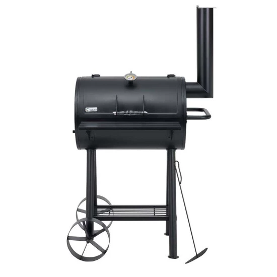 Der Grill ist vielseitig einsetzbar und bietet einem Grillfan viele unterschiedlichste Anwendungsmöglichkeiten. So kann zum einen das Grillgut traditionell auf der vorgesehenen Grillfläche direkt über der Glut zubereitet werden. Durch das angebaute lange Rauchrohr lässt sich aber auch indirekt grillen und smoken. Das Fass ermöglicht das Schließen des Deckels, dass die Hitze nicht so leicht nach oben entweichen kann. Somit gibt der Deckel die gebündelte Hitze im Inneren an die Grillware ab. Ähnlich wie beim Umluftherd wird das Grillgut bei diesem Vorgang von allen Seiten gleichmäßig gegart. Spezielle Lüftungsöffnungen sorgen während des Grillvorgangs für eine ausgeglichene Luftzirkulation und verhindern das Erlöschen der Kohle bei geschlossenem Deckel. Das einfache Überwachen der Gartemperatur, durch das im Deckel integrierte Thermometer, lässt das gewünschte Grillergebnis eines krossen, saftigen Bratens spielend realisieren. Die emaillierte Beschichtung der Grillroste lassen schnell nach dem Grillen wieder vor dem Grillen sein! Denn die leichte Reinigung lässt den Grillspaß an erster Stelle stehen. Die kalte Asche kann dabei mühelos mit dem Ascheschieber aus dem Aschefach geräumt werden.