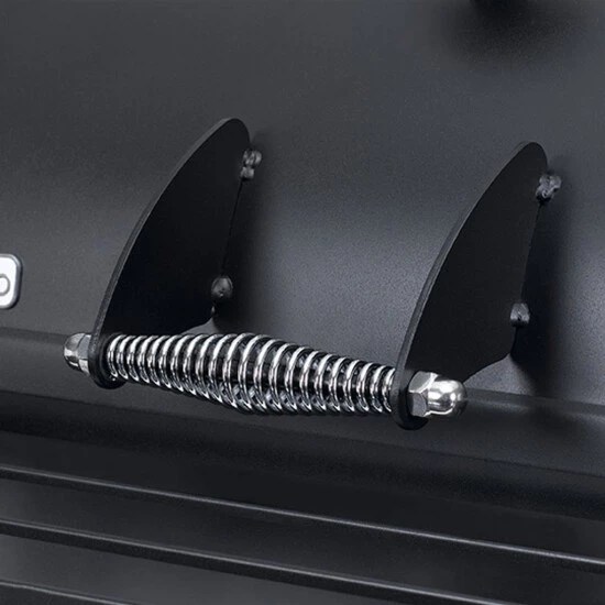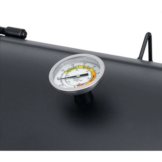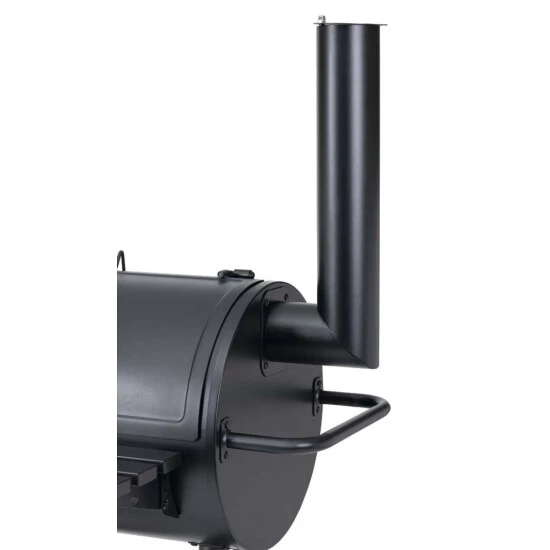 Der Stahldeckel der Brennkammer ist mit einem robusten Handgriff ausgestattet, ebenso ist zur Temperaturüberwachung beim Smoken, ein gut ablesbares Thermometer im Deckel eingebaut. Über die Stunden, haben Sie beim Grillfass Berkeley die Temperatur konstant im Blick. Wie beim Smoker üblich, ist auch das Grillfass Berkeley mit dem dafür typischen Kaminhabzug ausgestattet. Da beim Grillfass Berkeley die für Smoker typische kleine Brennkammer fehlt, sollte für den Smokebetrieb nur auf der linken Seite des Fasses eingefeuert werden und das Fleisch entsprechend auf die rechte Seite des Grillrosts abgelegt werden. Der Einsatz einer optional erhältlichen Aromabox sowie Späne oder Pellets sind natürlich auch möglich. Selbstverständlich sorgt eine regelbare Luftzufuhr für den nötigen Durchzug des Heißrauches, welcher am Kaminabzug wieder heraustritt.