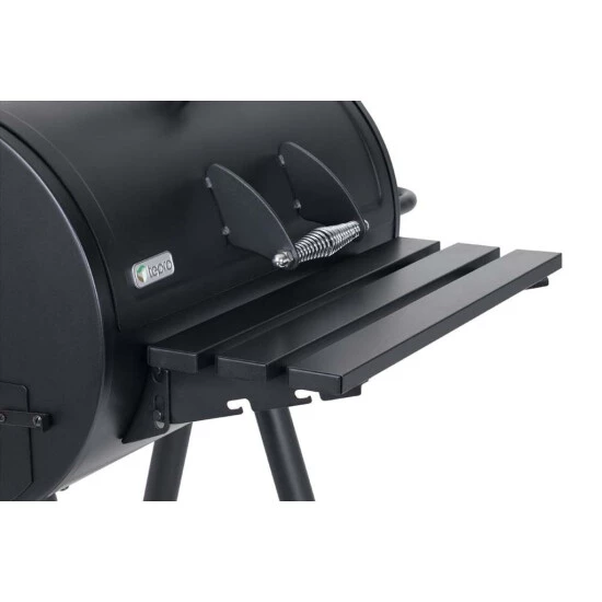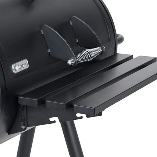 Eine abklappbare Frontablage welche mit Besteckhaken versehen ist, sorgt für den nötigen Platz zum abstellen des Grillfleisch, Saucen, Gewürzmischungen oder Grillzubehör. Weiteres Zubehör kann unter dem Grillfass, auf der dafür vorgesehenen Gitterrostablage verstaut werden. Ein Schürhaken der im Lieferumfang des Grillfass Berkeley enthalten ist, kann u.a. als Ascheschieber eingesetzt werden.