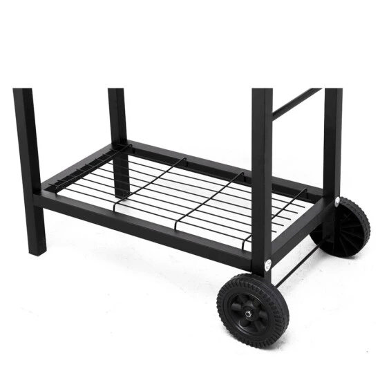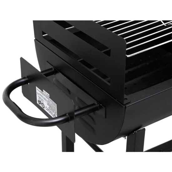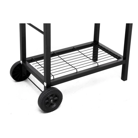 Für Dinge wie Grillanzünder, Saucen oder sonstiges Zubehör findet sich unten am Grill einen Ablagerost. Die Grillfläche liegt auf einer komfortablen Höhe von durchschnittlich 83 cm. So kannst du auch entspannt stehen, wenn du beim Grillen in Aktion bist.
