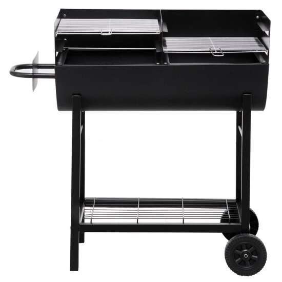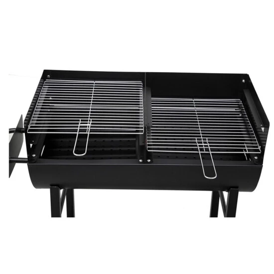 Mithilfe der abnehmbaren Griffe an den Rosten kannst du jeweils eine von 3 Höhenstufen wählen. Viele finden die Anordnung der Grillflächen nebeneinander zudem praktischer als hintereinander. Vielleicht gehörst du dazu.