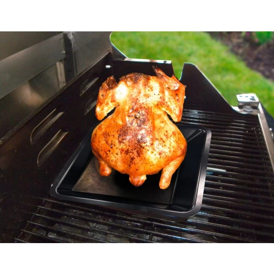 Der hitzebeständige, robuste Halter aus Gusseisen heizt schnell auf, speichert die Wärme und gibt sie gleichmäßig an das Grillhähnchen ab. Der Geflügelbräter fasst ein mittelgroßes Hähnchen, das du auf deinem Grill zubereiten kannst.