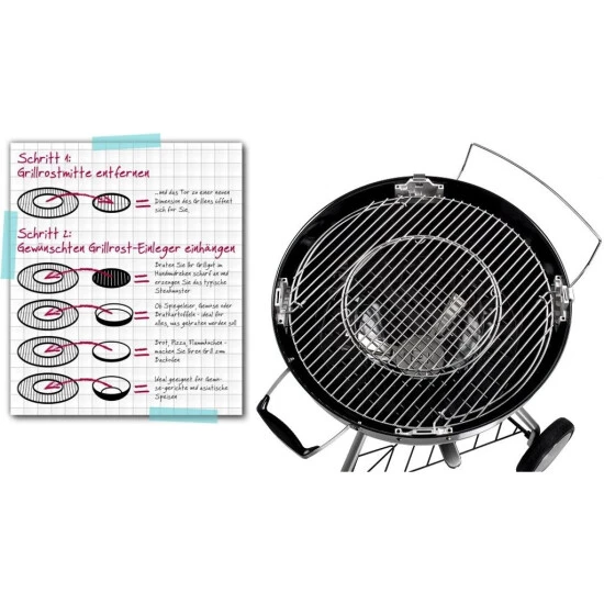 – Rostmitte herausnehmbar, ca. 30 cm Ø passende Zubehöreinsätze