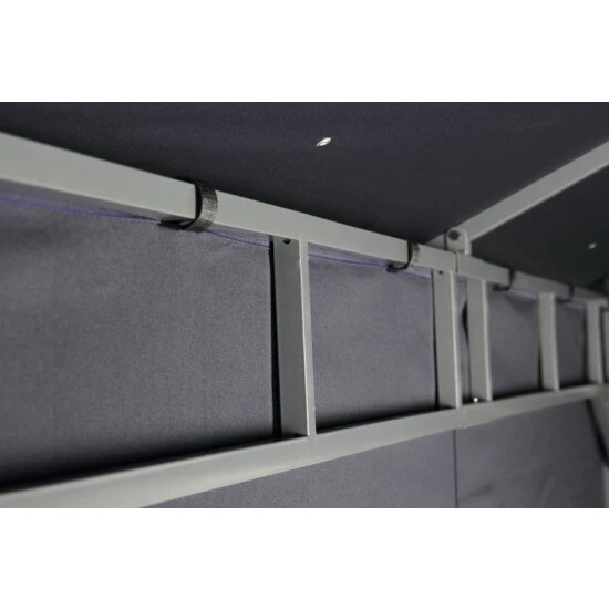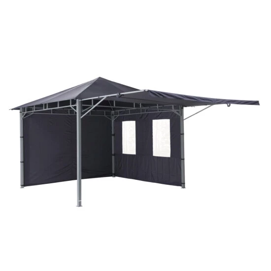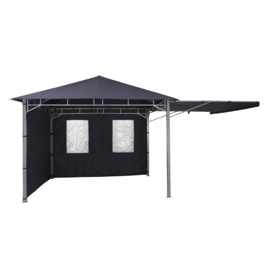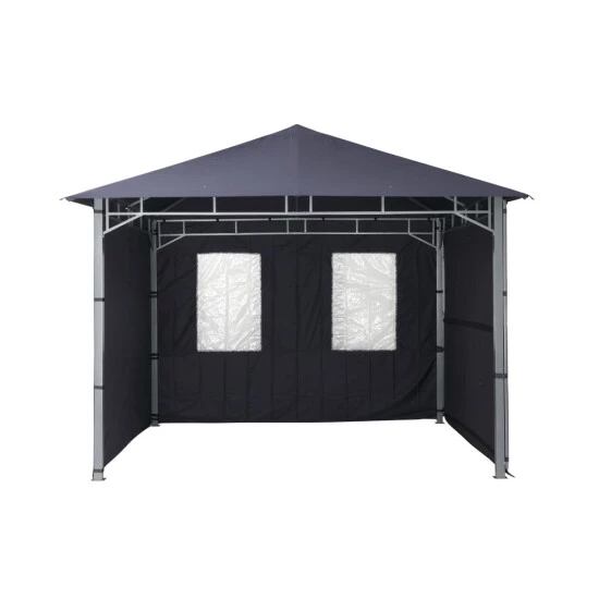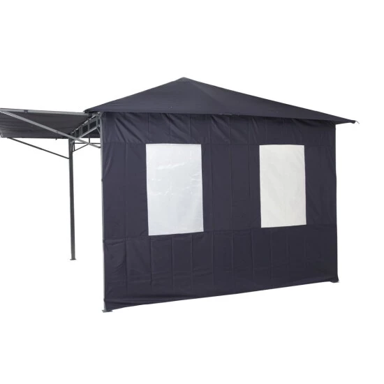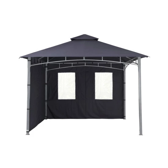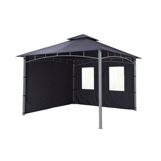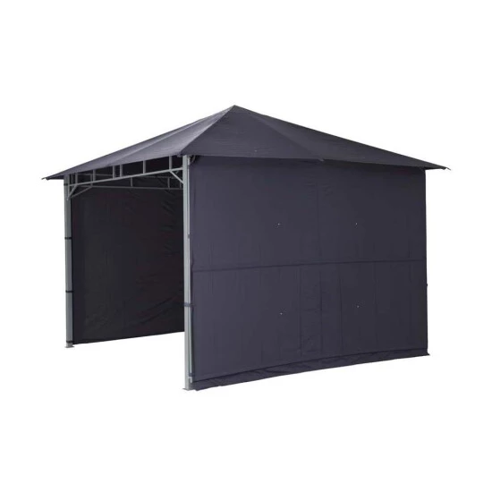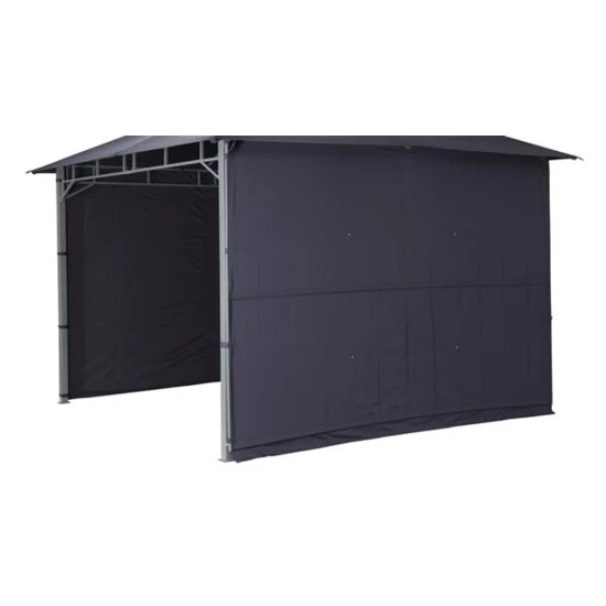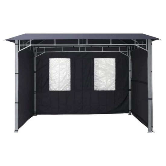 Als praktisches Zubehör für die Pavillons ÂLehua und ÂWaya gibt es die farblich passenden Seitenteile von tepro im 2er Set. Ein Seitenteil ist komplett geschlossen, das andere hat zwei große Folienfenster, die den Pavillon mit ausreichend Licht versorgen. Die Seitenteile werden unkompliziert mit Klettverschluss an den Dachstreben und Pfosten des Pavillons befestigt. Das Textilmaterial besteht aus 100% Polyester und ist durch seine besondere Behandlung wasserabweisend, schwer entflammbar und mit UV80+ UV Schutz widerstandsfähig gegen UV-Strahlen. So schützen die Seitenteile vor kräftigem Wind oder ermöglichen auch an kühlen Abenden gemütliche Stunden unter dem Pavillon.