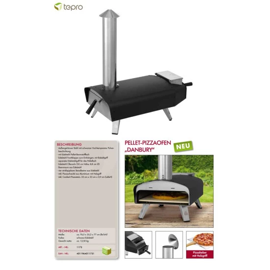Genieße la Dolce Vita im Freien: Mit dem stilvollen und praktischen tepro Pizzaofen Danbury