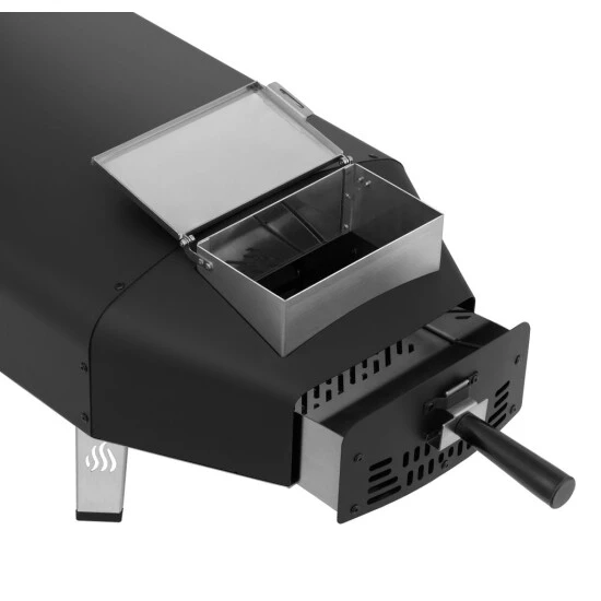 Das Design ist durch die kompakte, gedrungene und runde Bauform und die Kombination aus matt-schwarz und anthrazit sehr elegant und stilvoll. Deine Gäste werden alles an diesem Pizzaofen lieben.