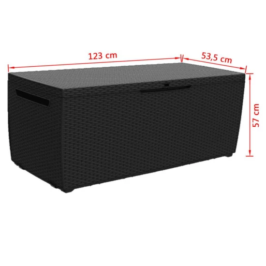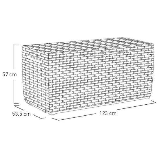 Fassungsvolumen ca. 305L Abmessung (LxBxH): aussen ca. 123 x 53.5 x 57 cm | innen ca. 113.7 x 48.1 x 50.2 cm Ideal für Sitzauflagen und Gartenbedarf, verblassen frei attraktives Design in Rattanoptik hergestellt aus UV- und wetterbeständigem, hochwertigen Polypropylen (Kunststoff)