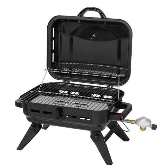 Ebenfalls im Lieferumfang enthalten ist ein Gasregler, sodass du schnell und einfach große und kleine Gasflaschen anschließen kannst. Möchtest du den Grill verstauen, klappst du einfach die vier Standbeine ein. So braucht dein Tischgasgrill Albany weniger Platz und du kannst ihn z. B. im Camper oder auf der Terrasse sicher verstauen.